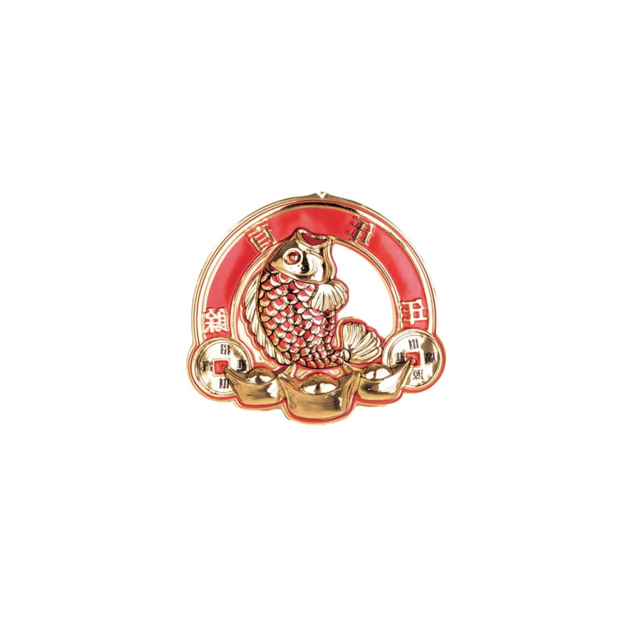 Si vous aimez les ornements venant du monde entier, nous avons pour vous ce décor oriental, représentant un poisson avec une bouche ouverte, formé dans un cercle agrémenté d'écritures chinoises, en 3D s'il vous plaît. Il vous fera un magnifique bibelot et illuminera votre intérieur, de par ses couleurs rouge et or. Il fait 50 x 45 cm de dimension et est fabriqué en matière plastique.