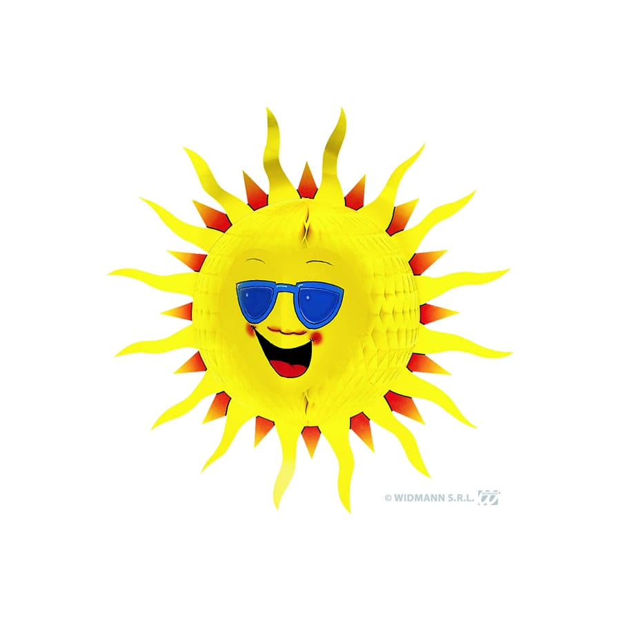 Pour un décor chaud et qui mettra tout le monde de bonne humeur, cette décoration est idéale. Accrochez ce soleil et cela apportera tout de suite un peu de gaieté a votre fête. De couleur jaune avec quelques rayons orange, ce soleil de 60cm a un visage dessus et porte des lunettes bleues.