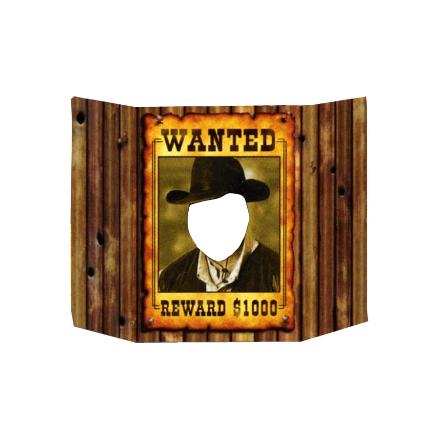 Pour une soirée à thème western, vous pourrez proposer une activité intéressante avec ce passe tête idéal pour prendre quelques photos de fugitifs. De couleur jaune, marron et orange,vous n'aurez qu'à demander à vos invités de passer leur tête par le trou prévu à cette effet et à prendre une photo. Sur ce décor wanted, vous trouverez l'inscription : "Wanted reward $1,000" en noir.