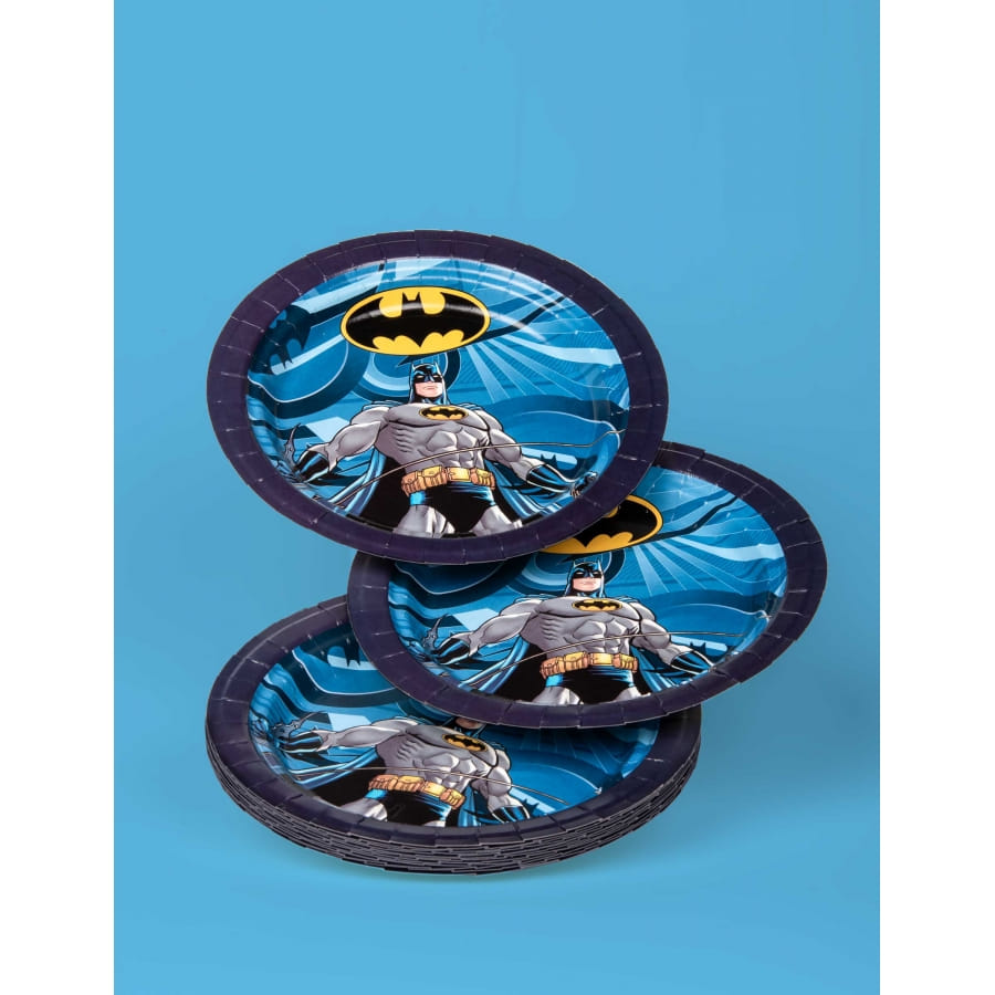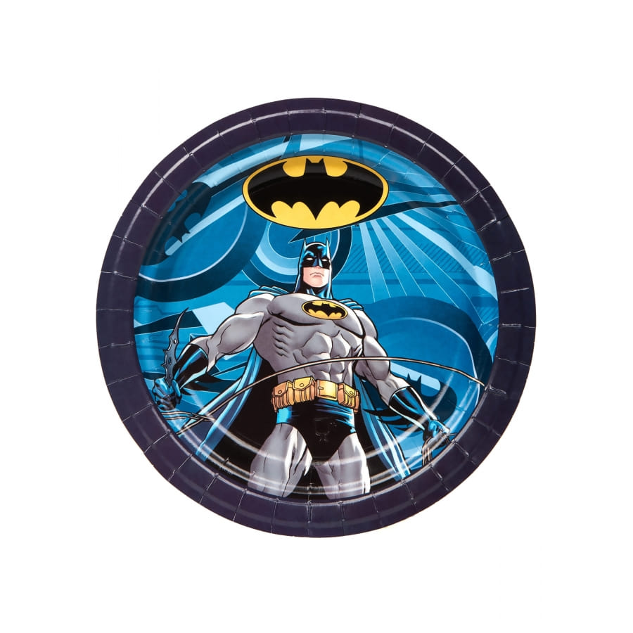 Pour commencer, nous avons ces incroyables assiettes en carton de 23cm, certifiées FSC pour garantir que même Batman serait fier de leur origine écoresponsable. Sur chaque assiette, Batman se dresse fièrement, prêt à affronter tous les méchants qui oseraient interrompre votre fête. Avec un fond bleu éclatant et le logo Batman positionné juste au-dessus de notre héros, ces assiettes sont idéales pour servir des gâteaux ou d'autres friandises.