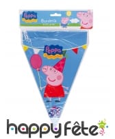 Elle est dotée de fanions triangulaires bleus sur lesquels on peut voir Peppa Pig.