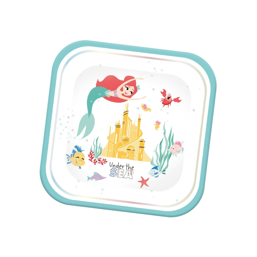 La bordure quant à elle est blanche et imprimée d'un palais doré et de la petite sirène.
