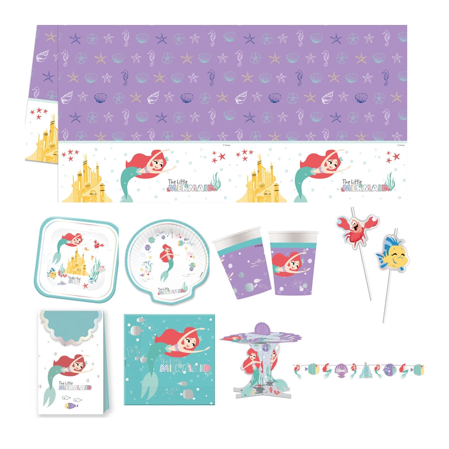 Explorez les fonds marins pour un anniversaire ou un baby shower grâce à cette Décoration de table Ariel et ses amis.