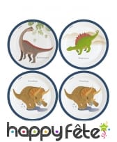 Elles sont dorées avec un grand dinosaure au centre, tandis que la bordure est agrémentée d'un feuillage vert.