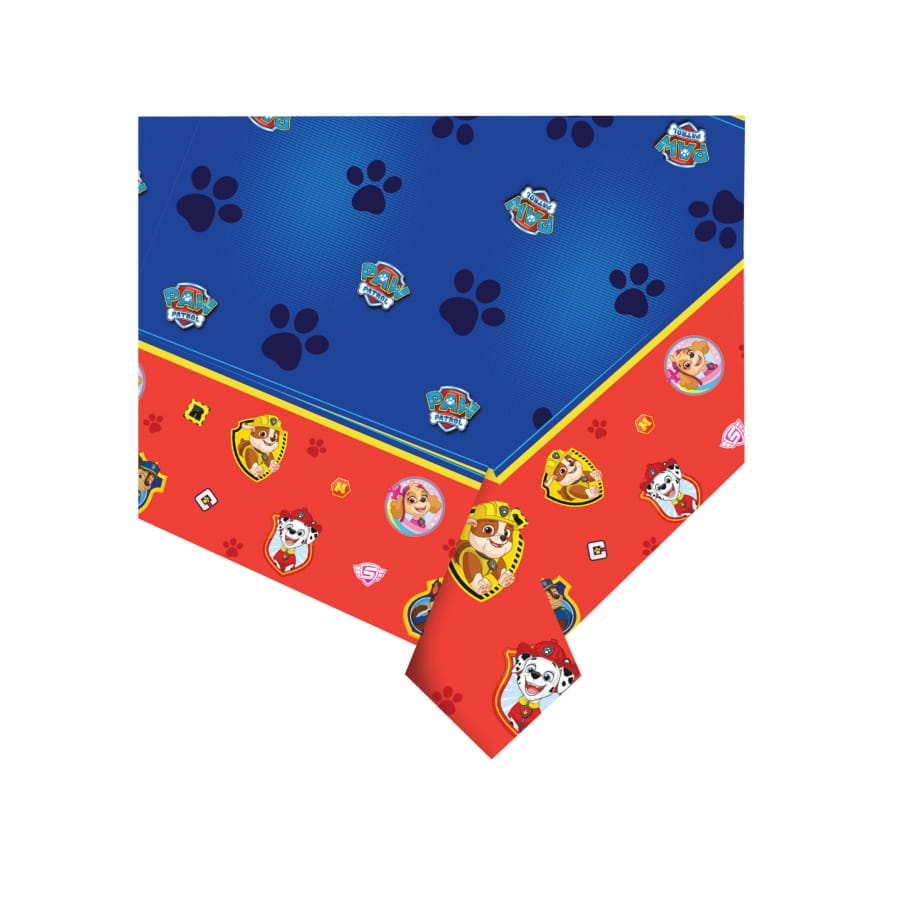 La partie centrale est bleue tandis que la bordure est rouge et imprimée des membres de La Pat Patrouille.
