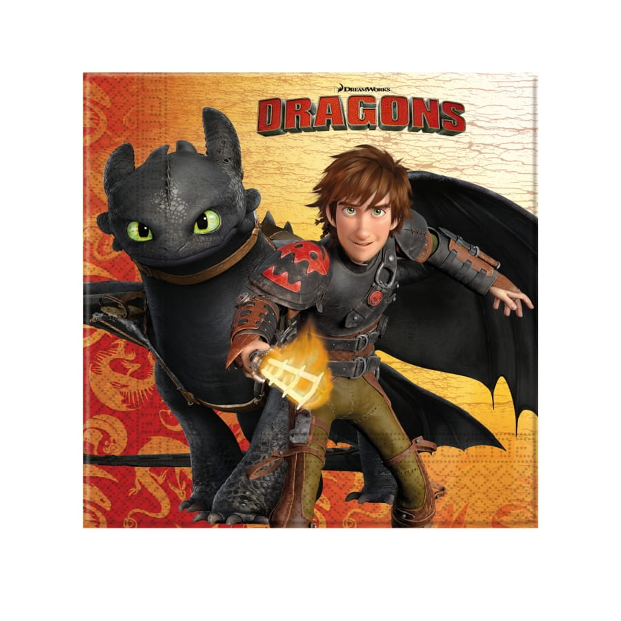 • Déco de table imprimée des personnages de Dragons. Au choix: 8 gobelets, 20 serviettes de 33 cm de côté une fois dépliées, 8 assiettes de 23 cm, 6 cartons d'invitation, 6 masques, 6 pailles, 6 chapeaux, 6 sacs en plastique de 23 x 16.5 cm, 1 nappe de 120 x 180 cm,