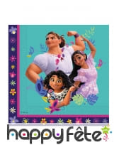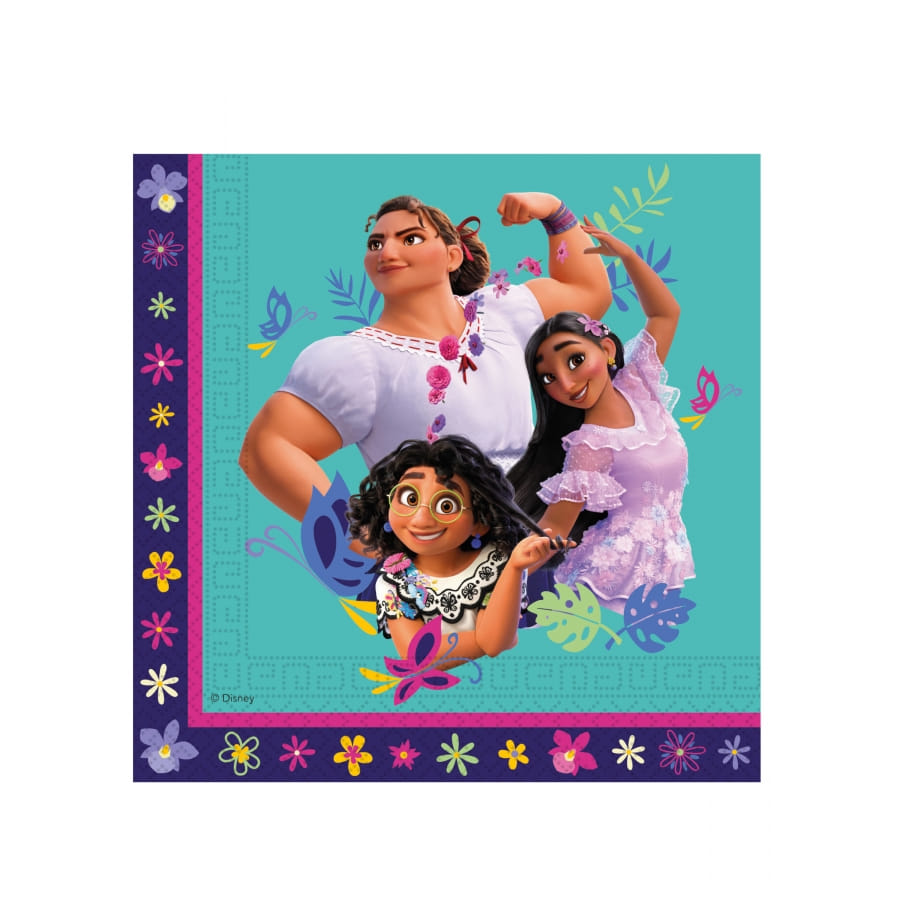 Chaque serviettes carrées est fabriquées en papier et porte l'image de Luisa, de Isabela et de Mirabel.
