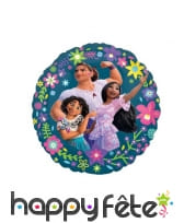 - 1 ballon en aluminium mesurant 42 cm de diamètre présentant 3 membres de la famille Madrigal (Luisa, Isabela et Mirabel), entourant de fleurs aux multiples couleurs.