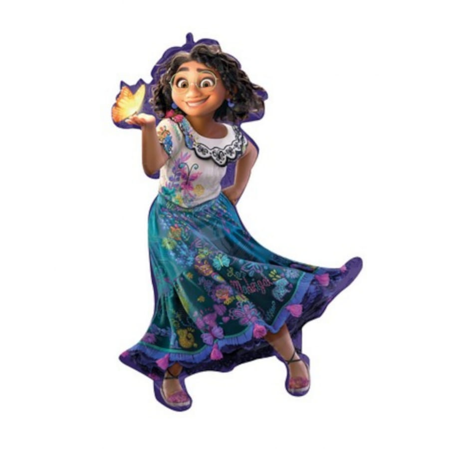 - 1 ballon taille réelle de 91 x 66 cm en aluminum, présentant l'image de Mirabel sur le devant et une silhouette décorée de motifs floraux multicolores.
