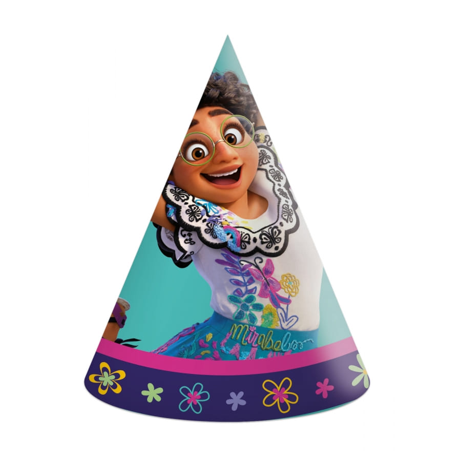 - 6 chapeaux coniques décoré du thème Encanto. Fabriqués en papier carton.