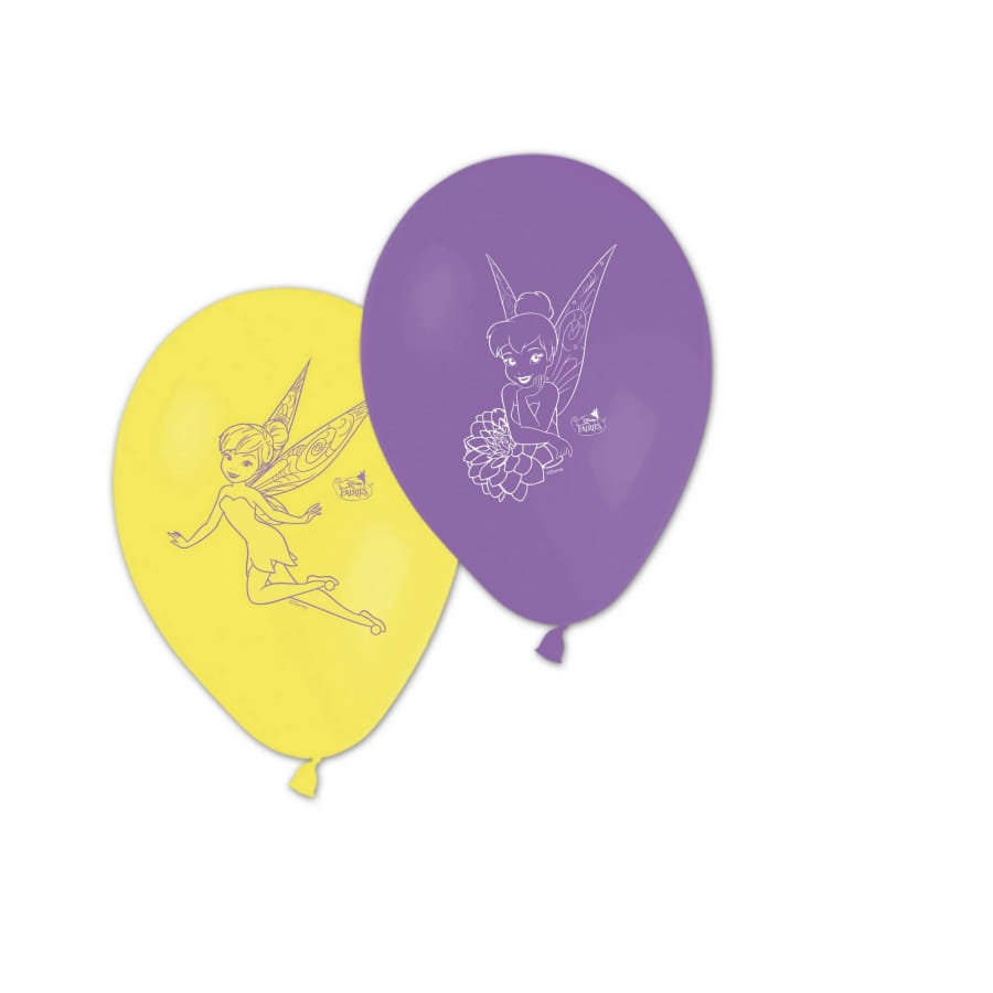 8 ballons de baudruche en latex de caoutchouc naturel avec Fée Clochette dessus (4 ballons violets et 4 ballons jaunes)