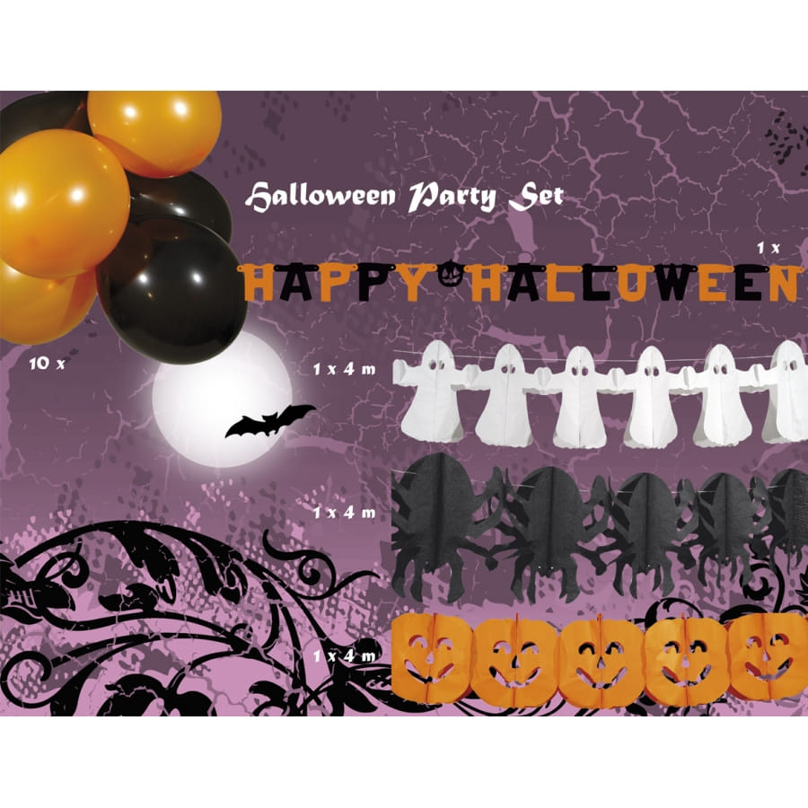 Pour la décoration de votre intérieur pour Halloween pourquoi ne pas vous en servir de ce kit de décoration. Il vous sera d'une grande utilité. Il est composé de dix ballons de couleur noir et orange, d'une guirlande avec lettre 'Happy Halloween' en gros de couleur orange et noire, une guirlande fantôme en blanc qui fait 4 mètres de long, d'une guirlande araignée de couleur noir qui fait 4 mètres de long, d'une guirlande citrouille en orange qui fait 4 mètres de long.