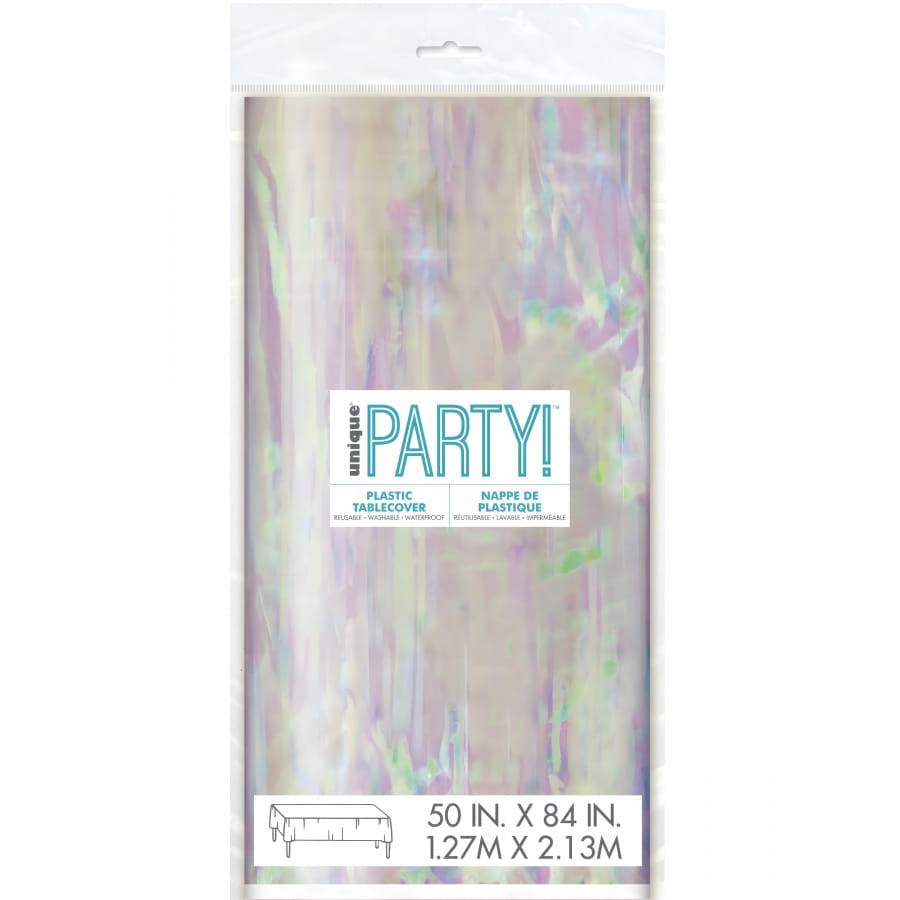 Et Pour compléter la décoration de table, optez pour notre nappe en plastique iridescent argenté de 127 x 213 cm qui apportera une touche scintillante à votre décoration.