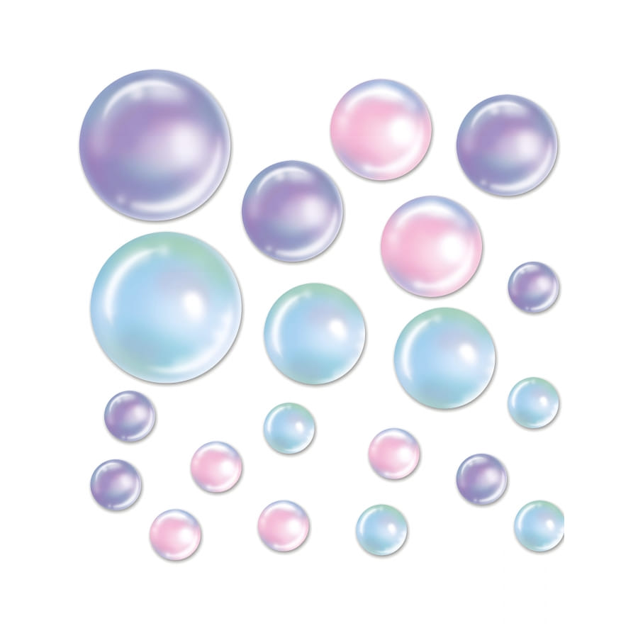Ajoutez une touche de magie supplémentaire à la pièce avec nos 20 décorations en carton représentant des bulles irisées bleues, violettes et roses. Ces bulles mesurant de 10 à 30 cm créeront une atmosphère féerique et enchanteresse.