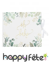 - 1 livre d'or mesurant 22 x 19 cm, avec imprimés de feuilles vertes et inscription dorée.