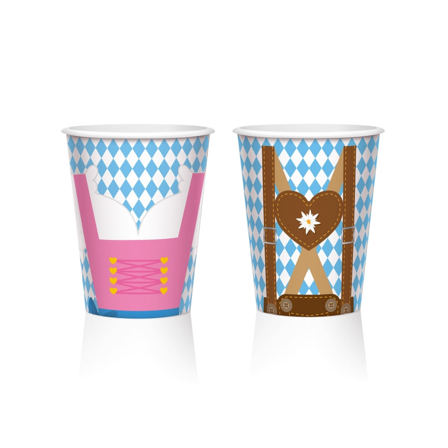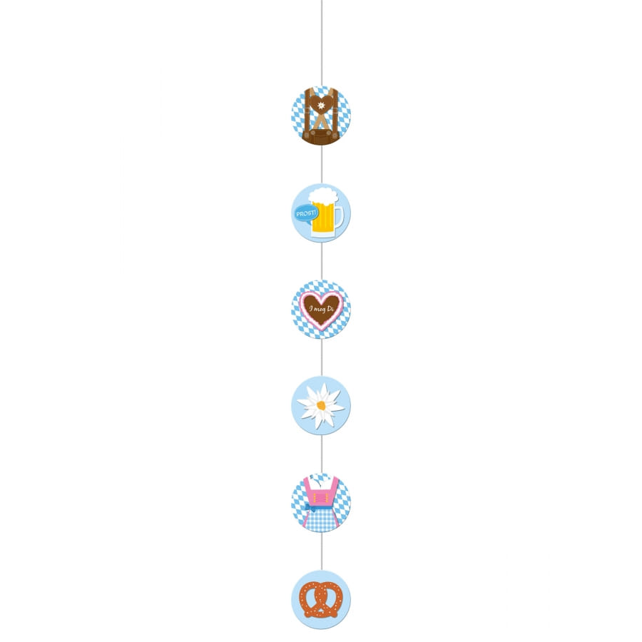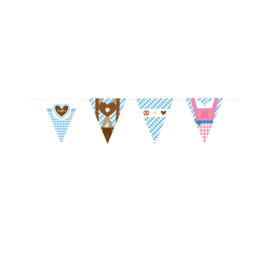 Sur les fanions on retrouve les motifs bleus et blancs typiques de la fête de la bière, ainsi que des motifs d'uniforme de servante bavaroise.