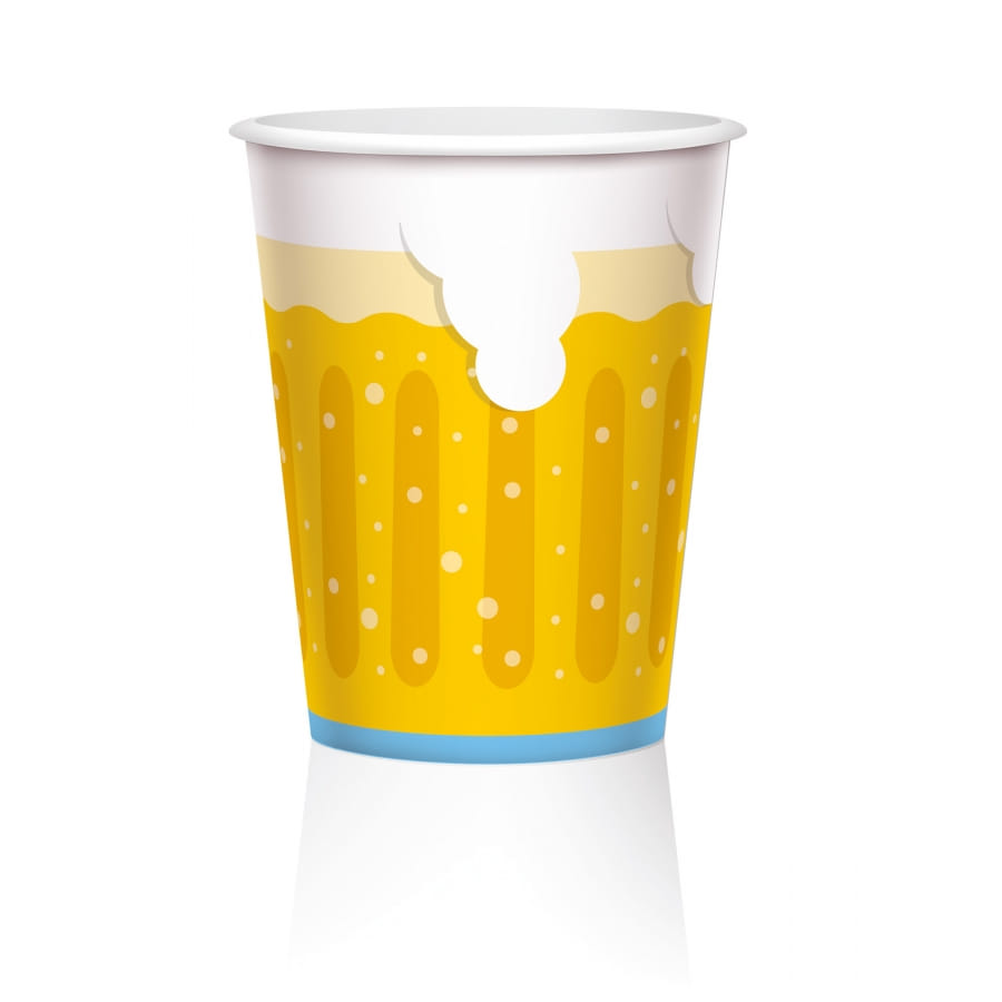 - 6 grands gobelets d'une contenance de 45 cl, imprimés de motifs rappelant une chope de bière transparente