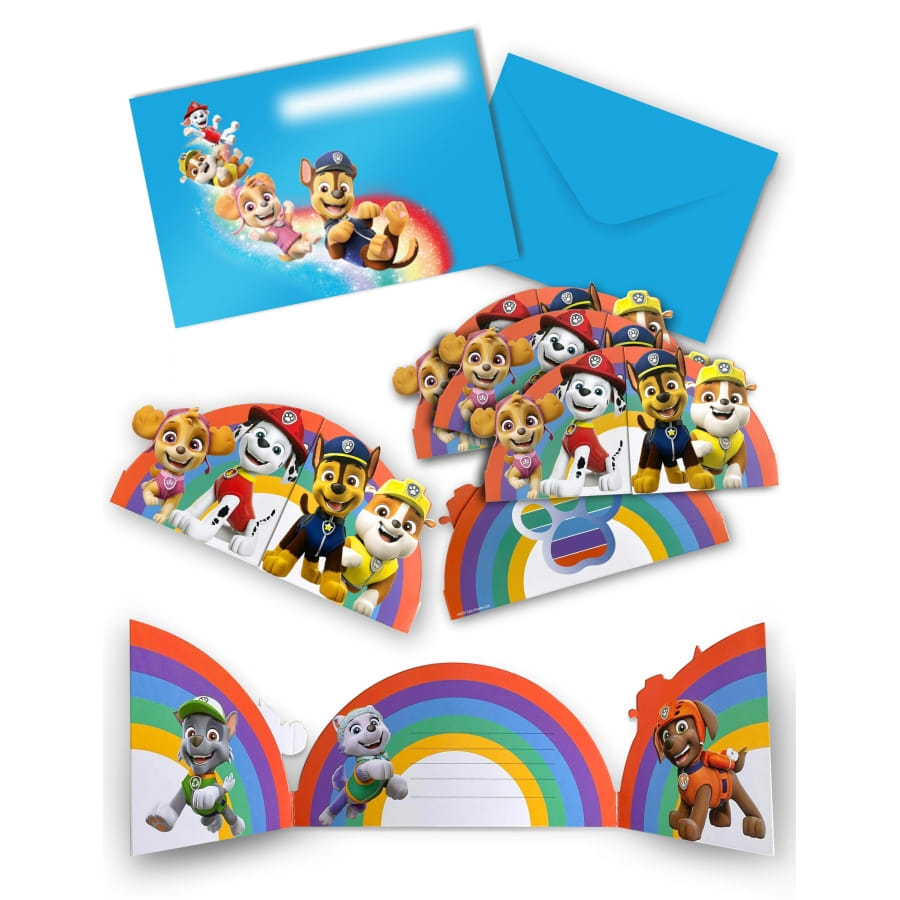 Pour commencer en beauté : Invitez la troupe avec nos 8 cartes d'invitation en papier à l'effigie de Chase, Marshall, Ruben, et Stella. Et pas de panique, nous avons ajouté les enveloppes bleues mesurant 10 x 12 cm, décorées avec amour et les images des personnages préférés de votre enfant.
