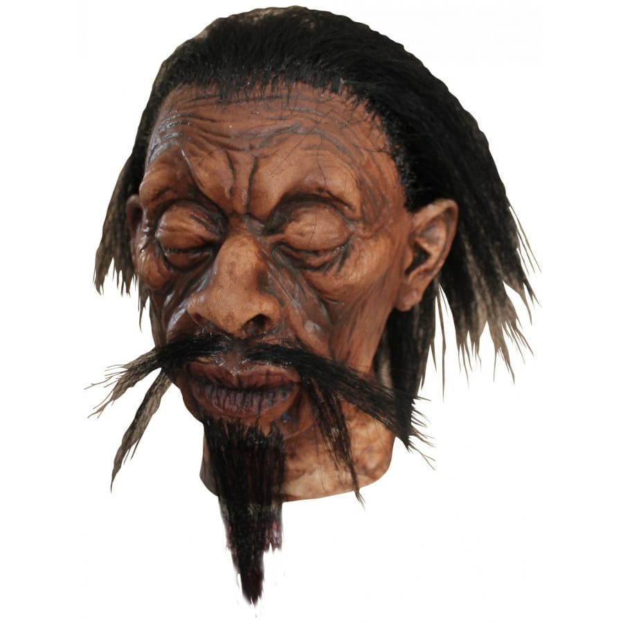 Décoration petite tête de vaudou à suspendre est ce qu'il vous faut pour une décoration d'Halloween réussie. L'accessoire représente une tête d'homme miniature avec un visage tour ridé, les yeux fermés ainsi que des cheveux et une moustache noire. Il mesure 18 cm de haut et 12 cm de large. Vous pouvez soit le suspendre ou bien le poser bien en vue de tous.