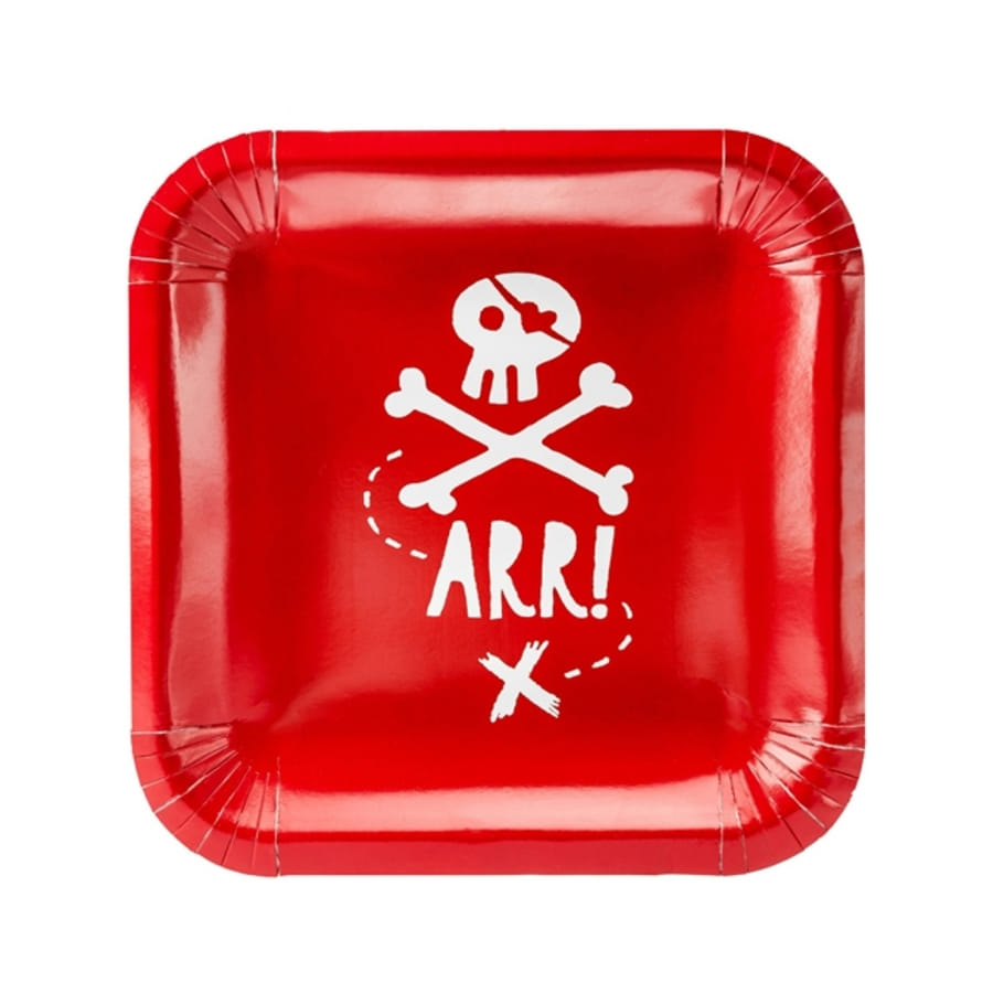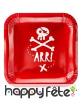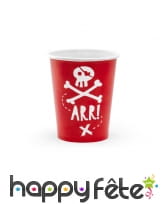 -6 gobelets en carton rouge d'une contenance de 220ml imprimés d'une tête de mort blanche avec la mention "Arr".