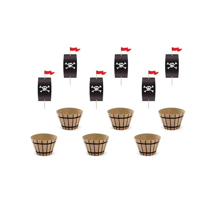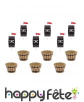 -Un kit pour cupcake comportant 6 moules à cupcake marrons et 6 pics de décoration.