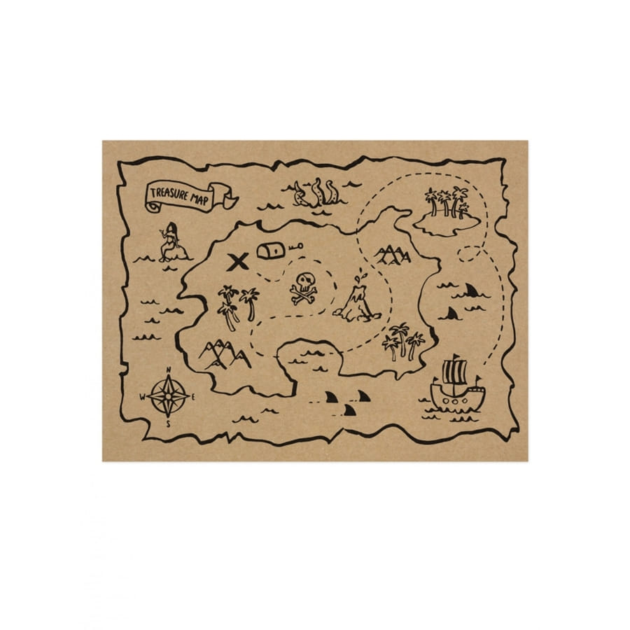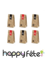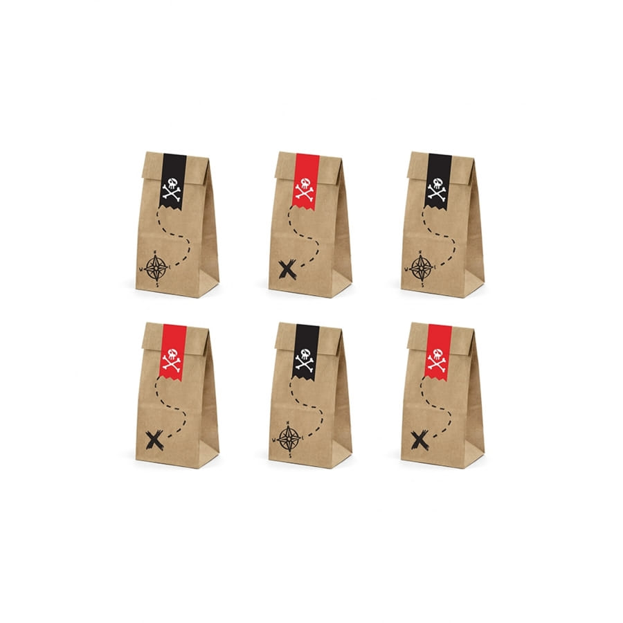 -6 sacs cadeaux en papier kraft, imprimés d'un chemin tracé menant à un trésor.