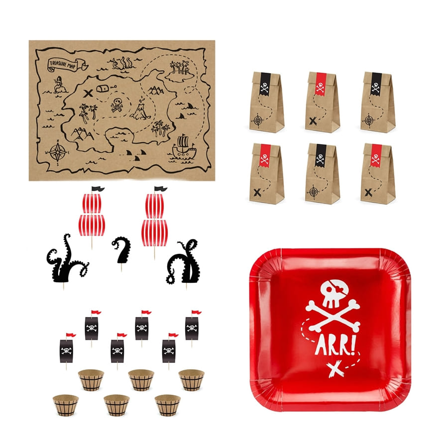 Organisez un repas d'anniversaire à la Robinson, grâce à cette décoration pirate carte au trésor.