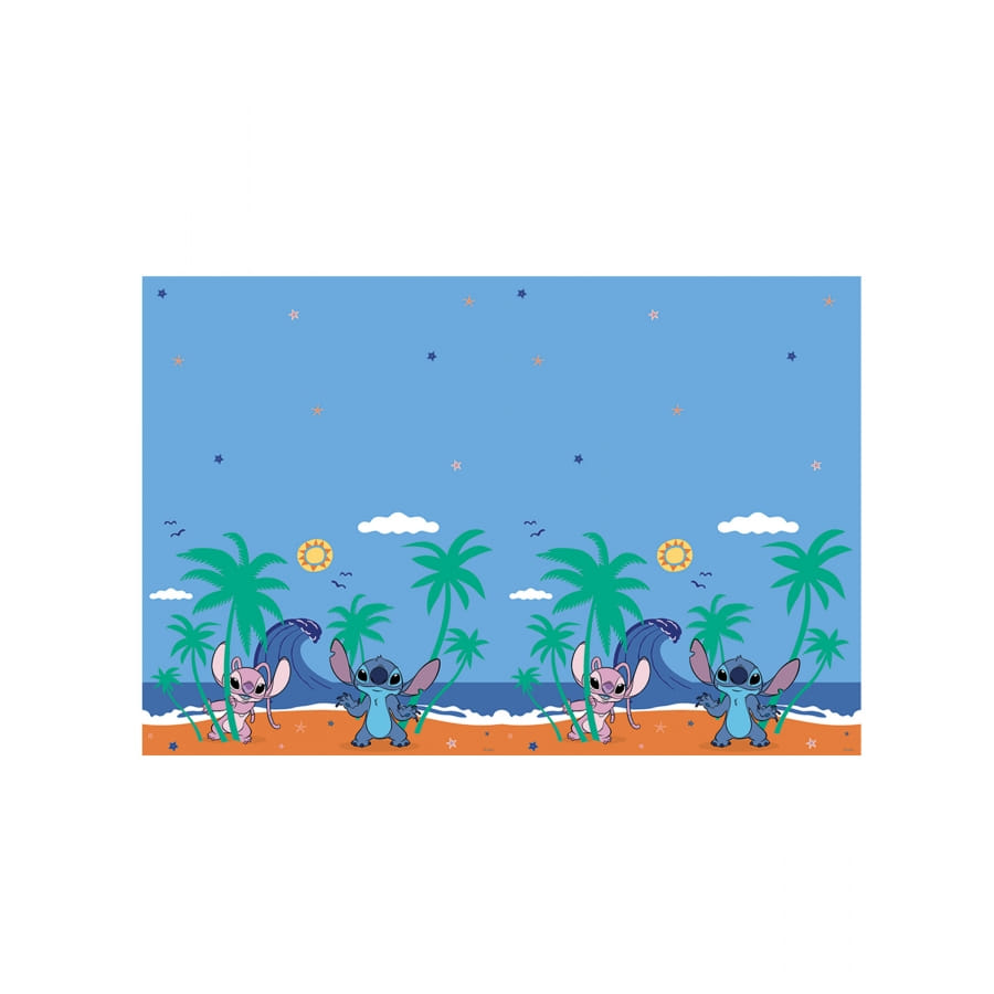 Protégez votre table tout en la décorant avec cette nappe en plastique de 120 cm x 180 cm. Elle représente un beau ciel bleu, la mer, une plage et bien sûr, Stitch et Angel, pour une ambiance estivale et festive.