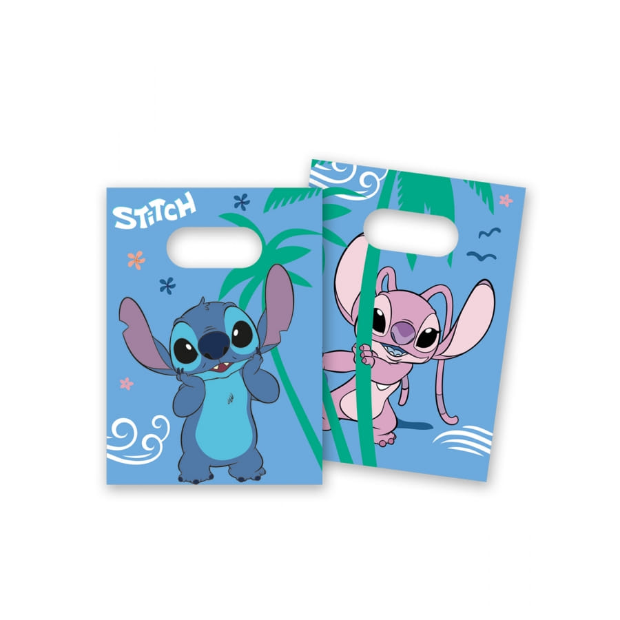 Chaque sac cadeau est décoré d'un personnage sur un fond bleu, représentant soit Stitch, soit Angel. Parfaits pour offrir de petits cadeaux à vos invités.