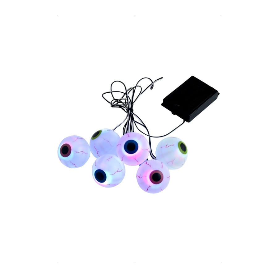 Décoration en forme de 6 yeux lumineux multicolores. Placez ces yeux à des endroits clés de votre maison ou de votre salle de fête à l'occasion d'Halloween pour un effet de frayeur garanti parmi les invités.