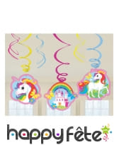 Les Suspensions : De belles boucles colorées, dont certaines sont reliées à des vignettes en carton (oui, recto-verso !) représentant des licornes, têtes de licornes et même un château. Vous avez dit enchanté ?