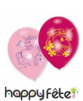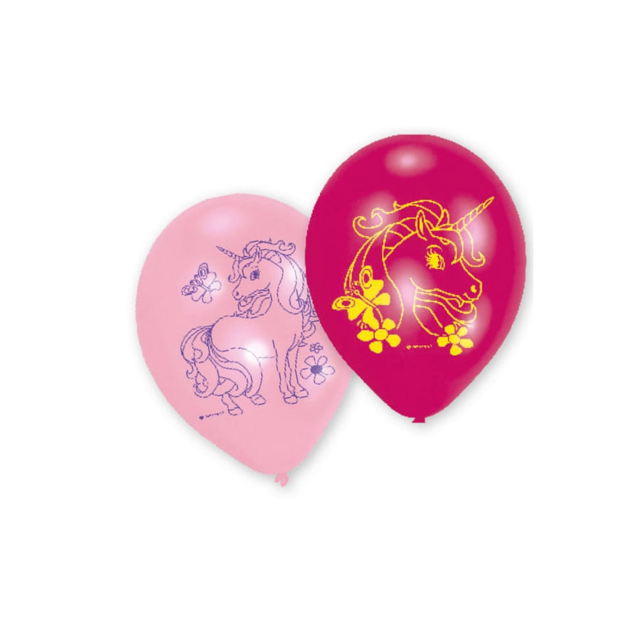 Les Ballons : Dans des tons roses et rouges, chaque ballon arbore une silhouette de licorne prête à s'envoler vers d'autres cieux.
