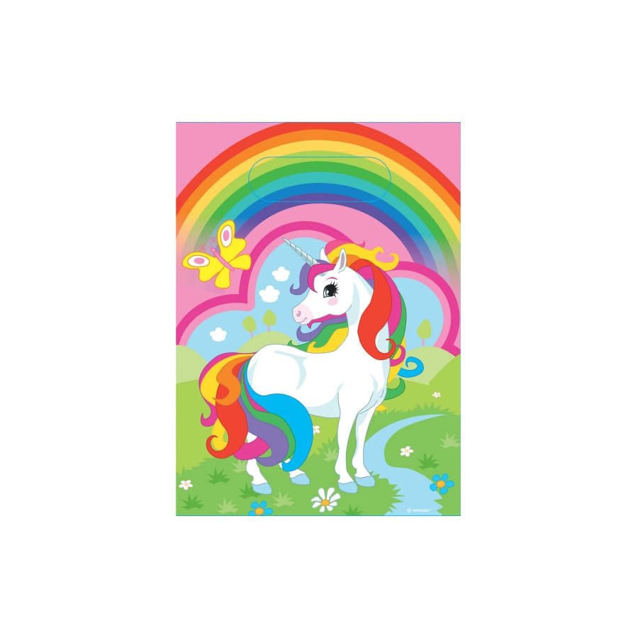 Les Sacs Cadeaux : Avec une licorne majestueuse sur un fond de ciel rose, ils sont parfaits pour distribuer les trésors à vos invités.