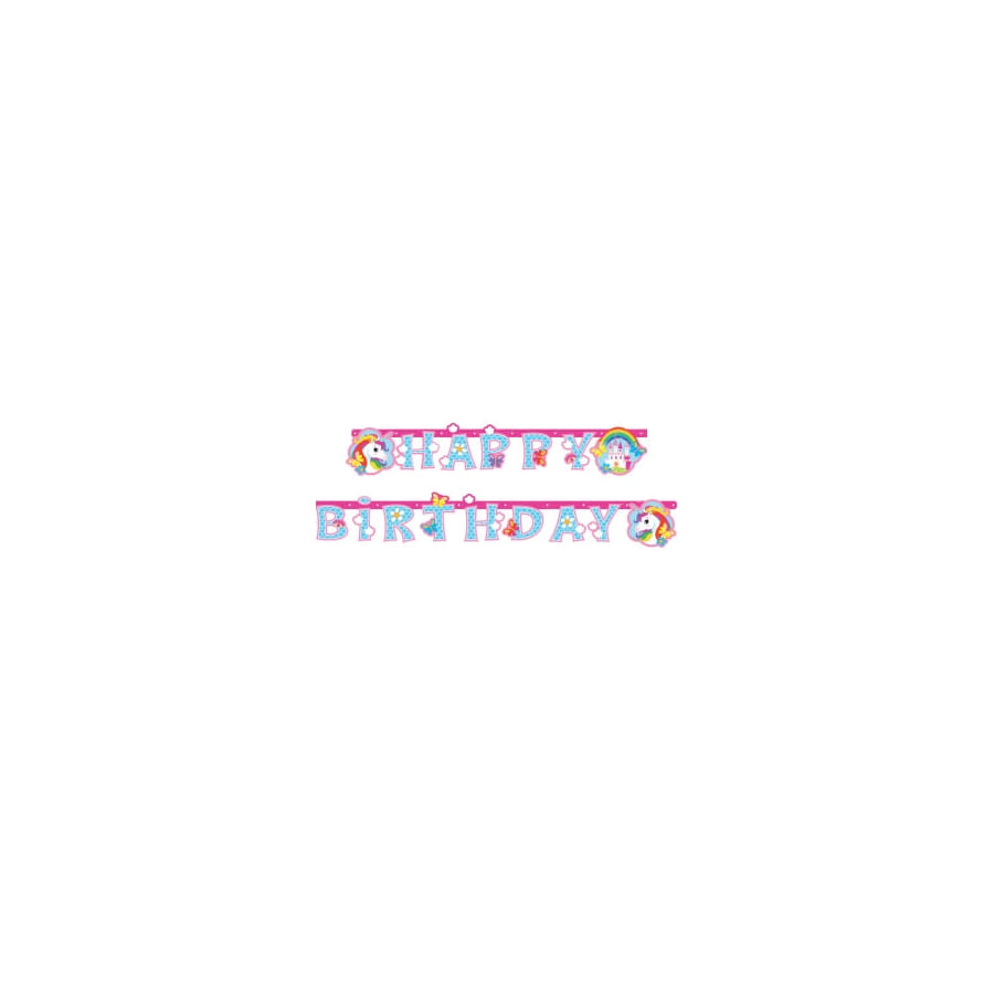 La Guirlande : Affichant fièrement les mots "Happy Birthday" en bleu, elle est entourée de têtes de licornes colorées pour rendre ce jour encore plus spécial.