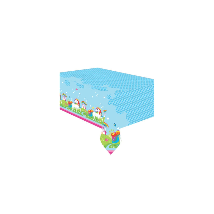 La Nappe : Bleue comme le ciel d'un matin d'été, elle est parsemée de licornes joyeusement colorées qui galopent sur le contour. Mesurant 120 x 180 cm, elle est parfaite pour accueillir tous vos convives et vos gourmandises.