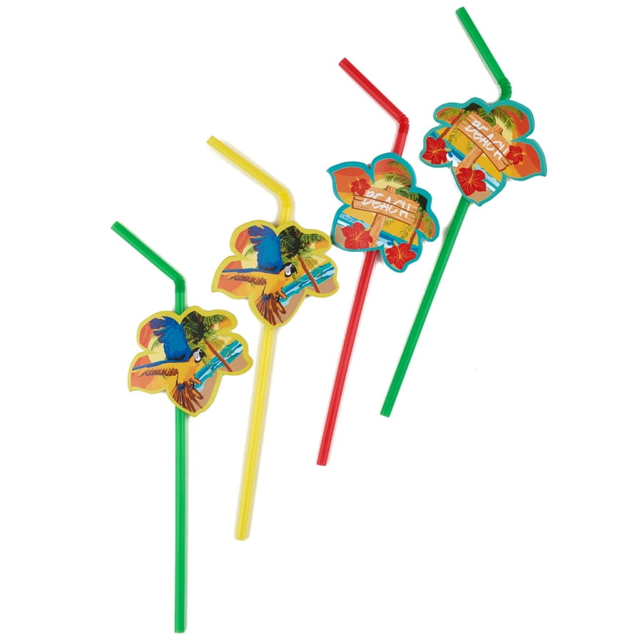- 6 pailles en plastique de couleurs différentes (rouge, vert ou jaune) dotées d'une vignette colorée.