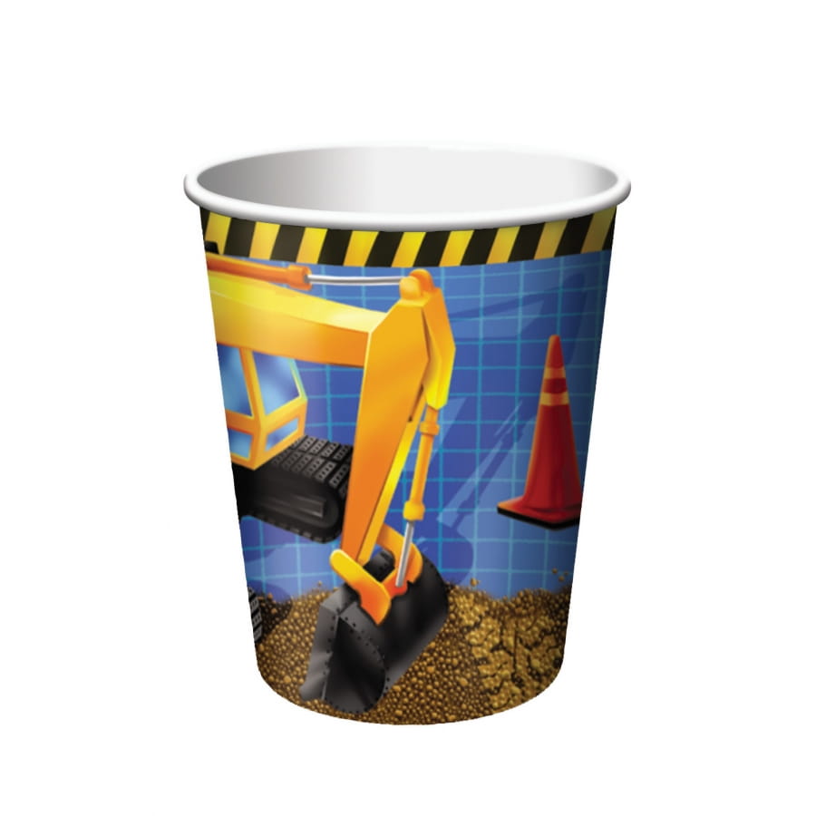 Idéals pour recevoir des boissons chaudes et froides, ils sont décorés d'un décor de chantier avec une machine de construction.