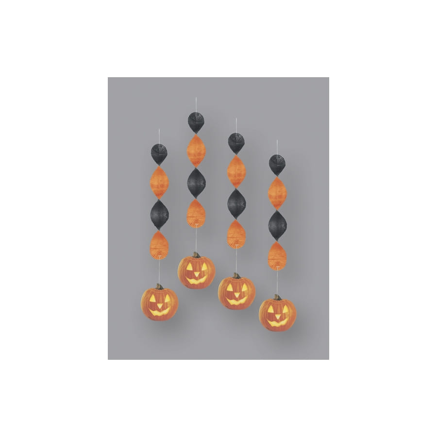 Pour orner vos murs, pourquoi ne pas miser sur quelques choses d'authentique ? Ces décorations citrouille à suspendre mesurent environ 45 cm de long. Le fil qui maintient les courges en suspension présente une succession de couleur : orange et noire. Un paquet contient quatre décorations. Nous vous proposons cet accessoire unique pour commémorer la fête d'Halloween. Soyez sans crainte, ce lot reste disponible sur notre site.