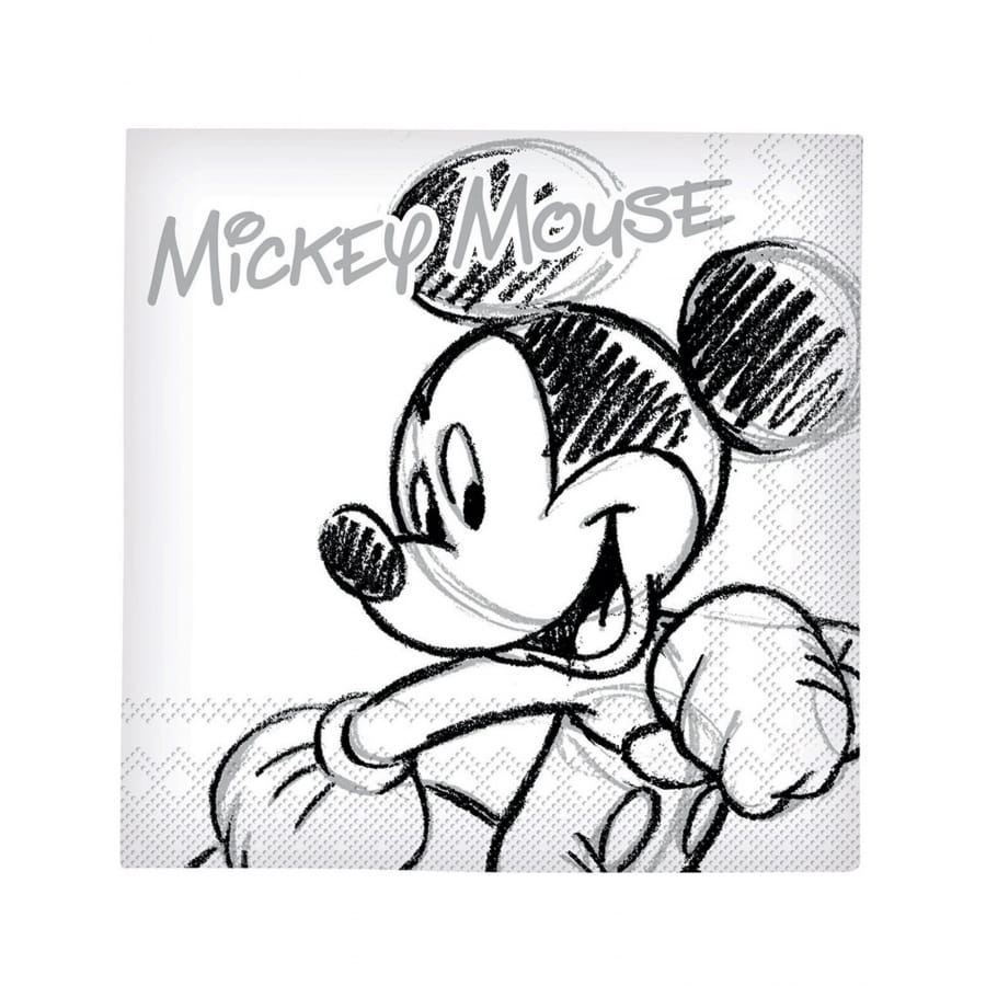 Le lot contient 8 gobelets en plastique d'une contenance de 25 cl Mickey en noir et blanc ainsi qu'un assortiment de 20 serviettes en papier de 33 cm de côté, également à l'effigie du célèbre rongeur.