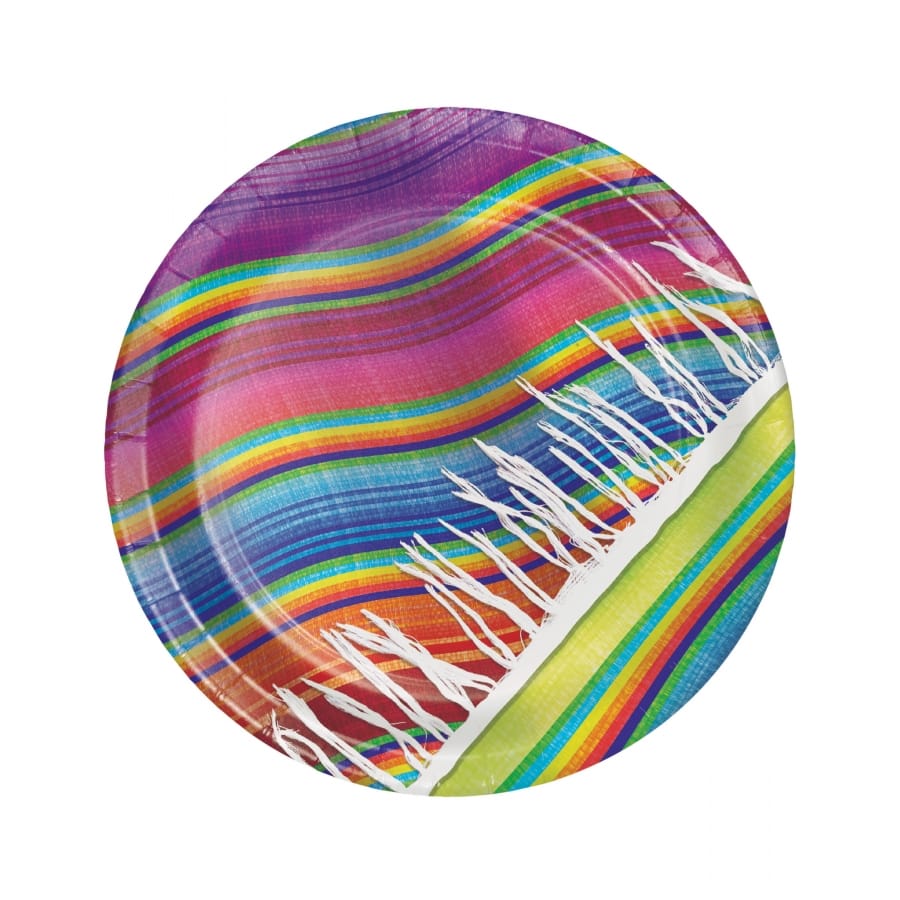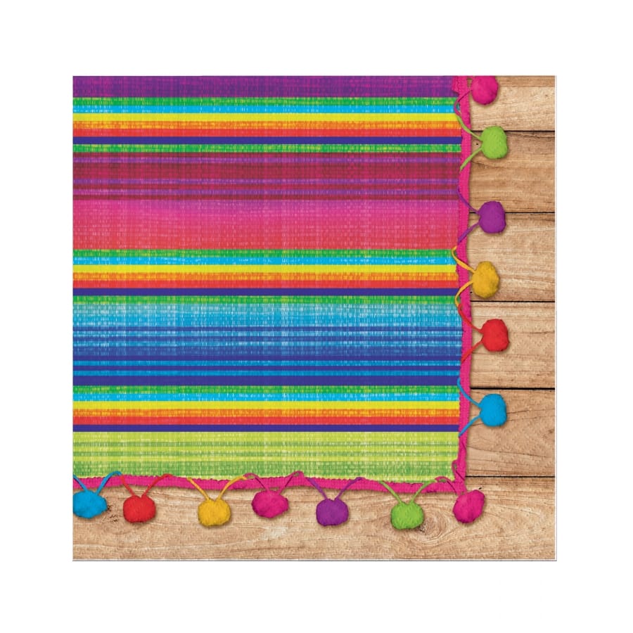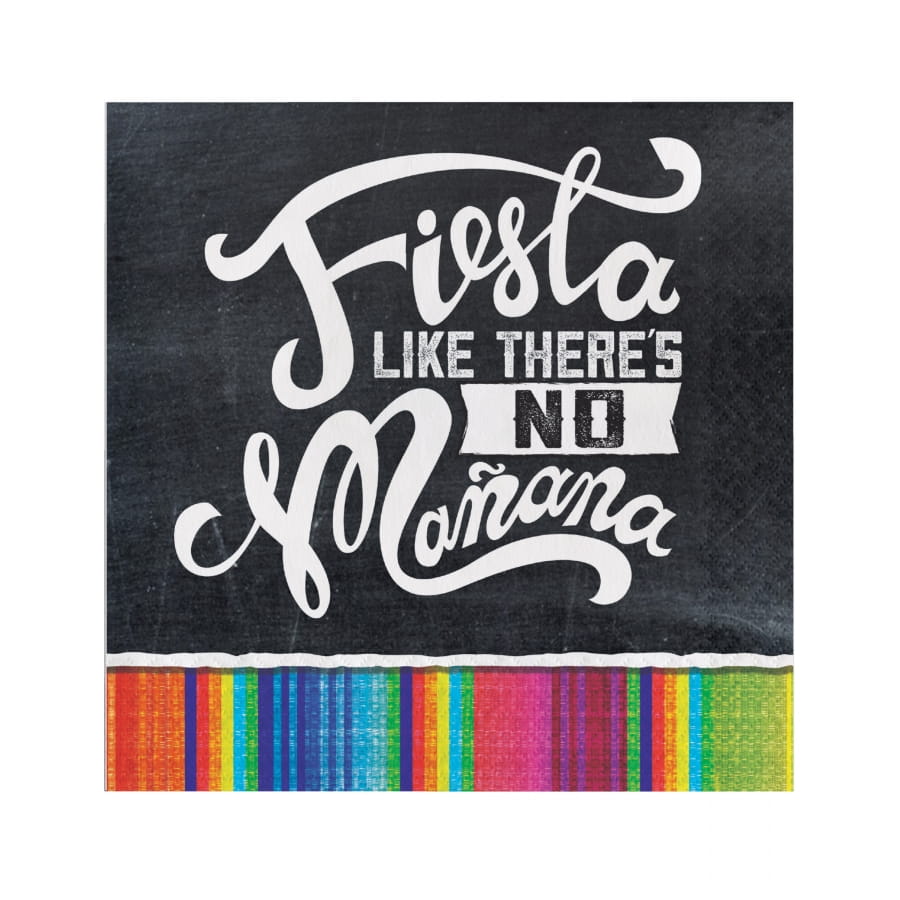 Elles sont imprimées des couleurs d'un poncho sur la bordure et du message Fiesta Like There's No Manana sur fond noir.