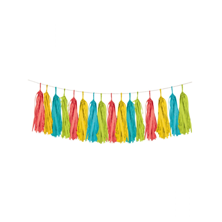 - 1 guirlande de 250 cm de long dotée de tassel multicolores de 20,3 cm de long chacun.