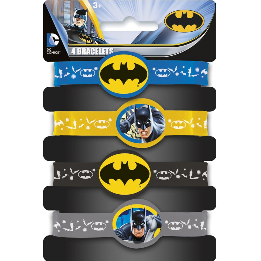- 4 bracelets en plastique caoutchouteux floqués d'une chauve-souris.