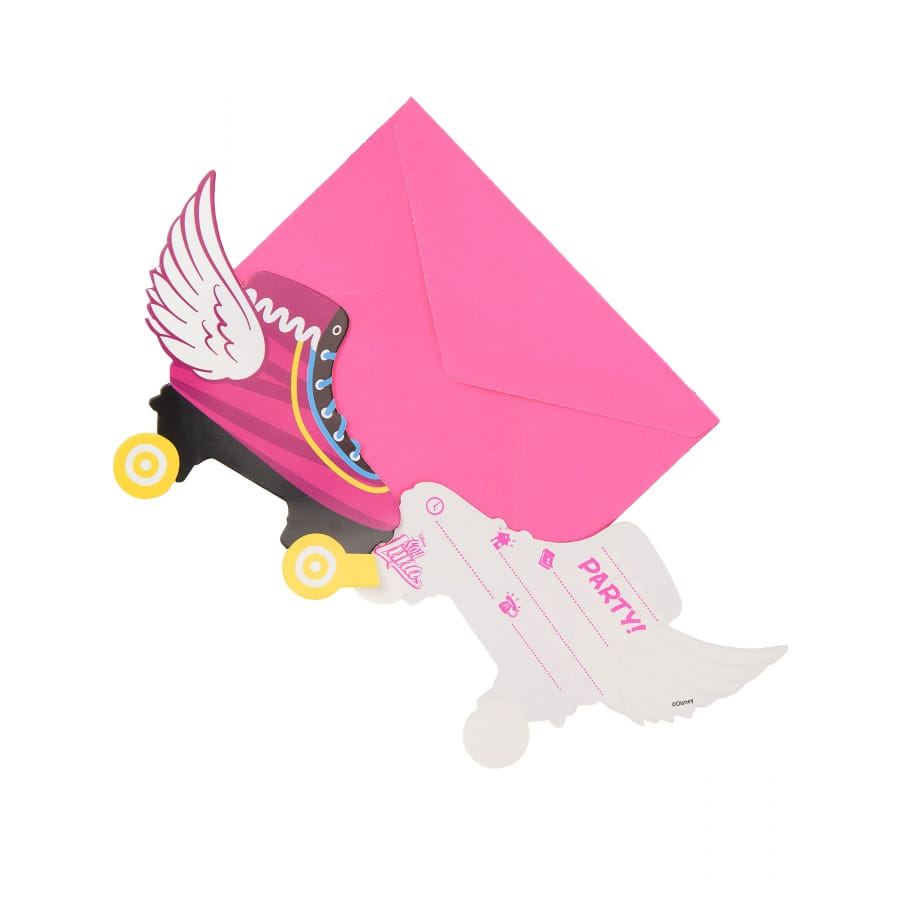 - 6 invitations composées de 6 enveloppes et de 6 cartons d'invitation représentant les rollers de Luna.