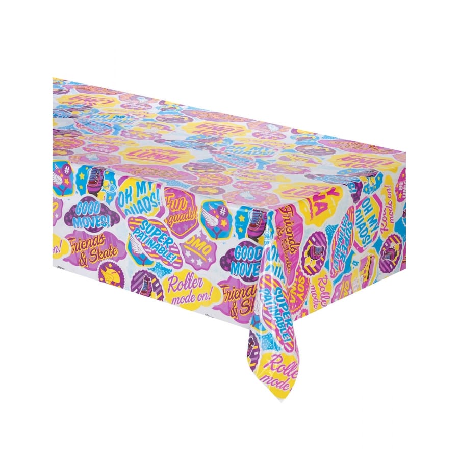 Haute en couleur, cette nappe est imprimée de plusieurs motifs ainsi que d'expressions telles que Roller mode on!, Super Patinable!