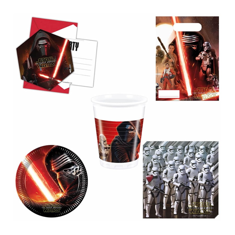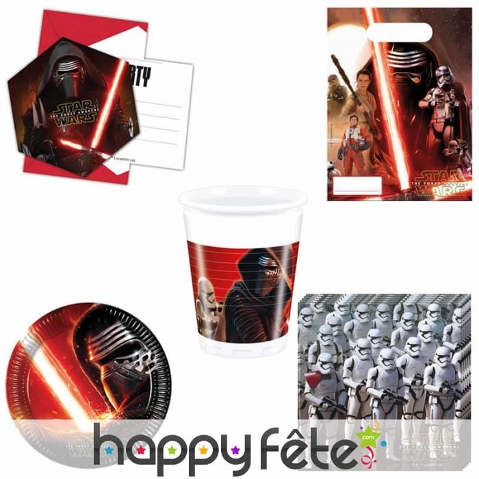 Une belle fête, c'est surtout une belle table, ce que vous aurez avec ces décorations star wars 7 d'anniversaire, pour un thème très futuriste. Tous les produits sont sous licence officielle Star Wars, et vous aurez le choix entre 6 cartes d'invitation avec enveloppes pour annoncer la fête, ou 6 sachets cadeaux pour offrir des présents, ou 8 assiettes de 23 cm ou 8 gobelets ou 20 serviettes 2 plis de 33x33 cm pour être utilisés à table. La nappe en plastique mesure 1.2 x 1.8m et est livrée pliée.