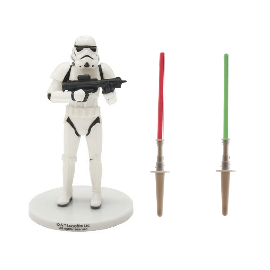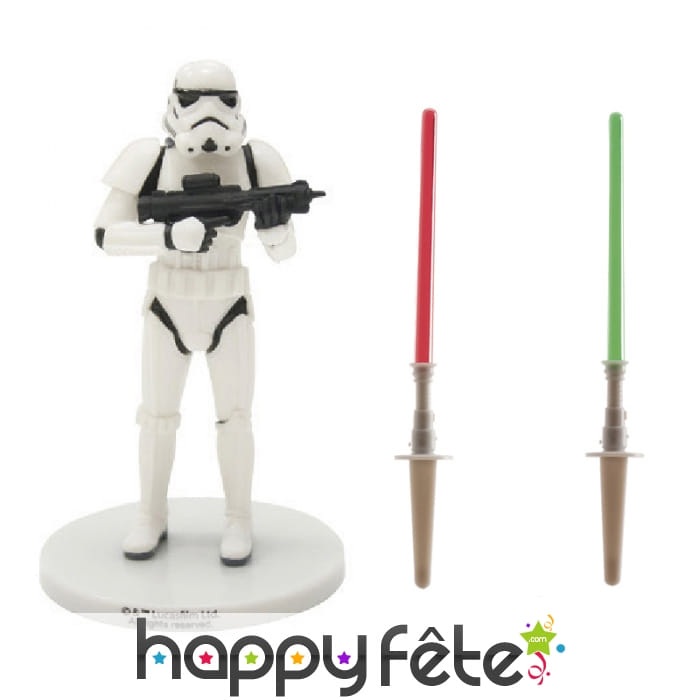 • Kit décorations Stormtrooper de 9cm en PVC. avec 2 sabres.