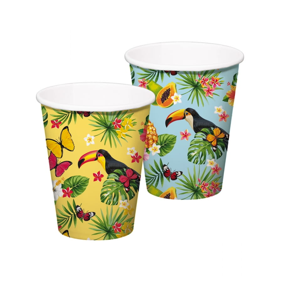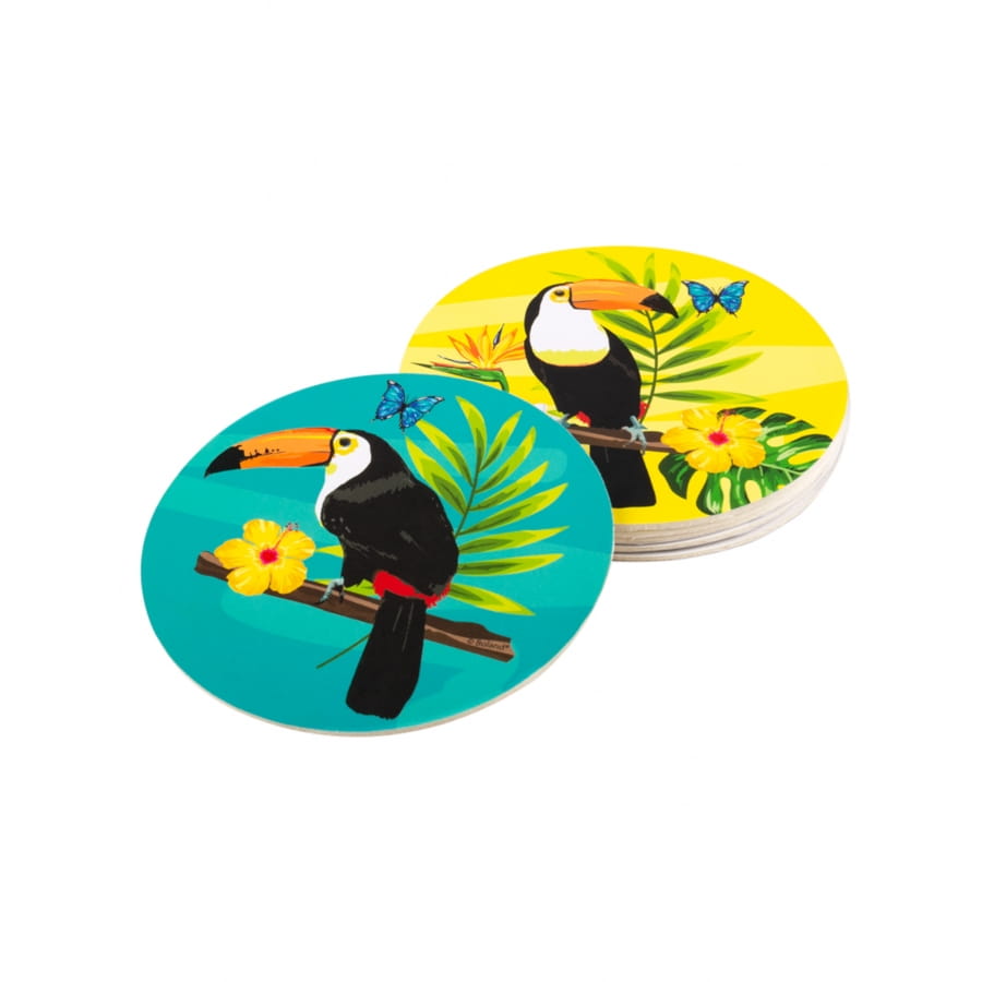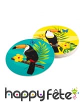 Elles sont imprimées de 2 toucans perchés sur une branche.
