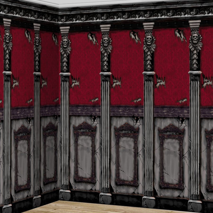 Les décors muraux colonnes squelette vendus par 2 représentent un château lugubre désaffecté.