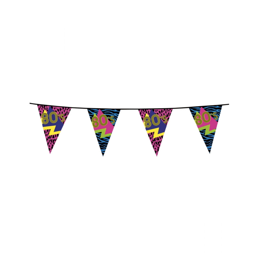 Une guirlande de 6 m assortie à la bannière avec de grands fanions de 36 x 25 cm.