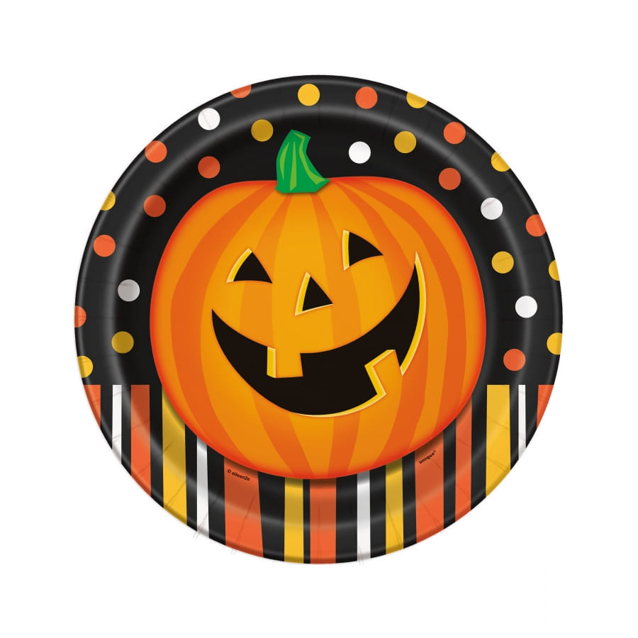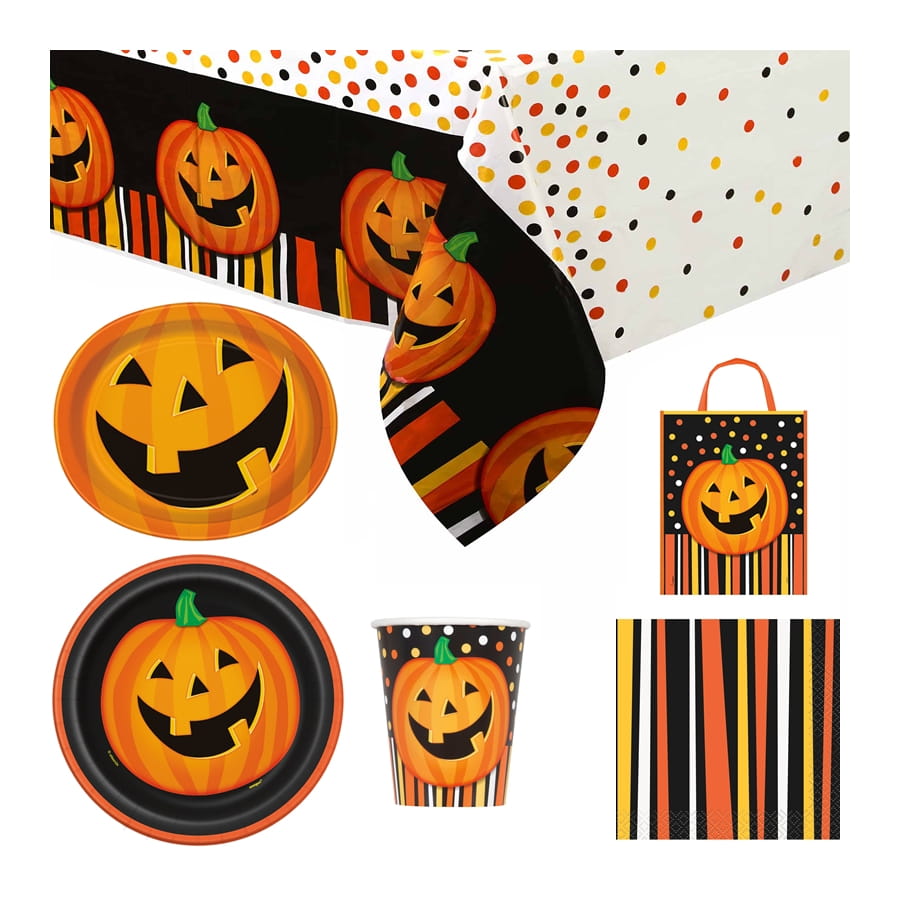 Ils représentent une belle citrouille orange sur un fond noir, à pois ou à rayures assortis.